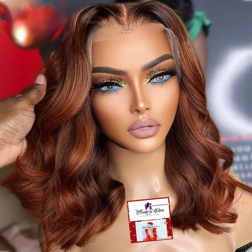 Red Ginger Brown Highlight Short Bob Wavy Lace Wig
